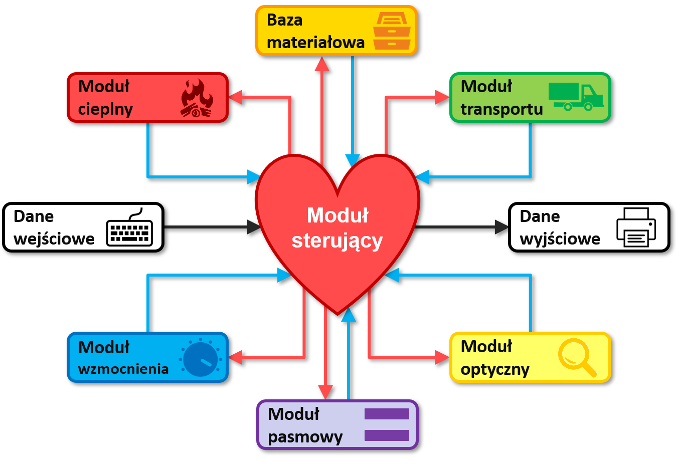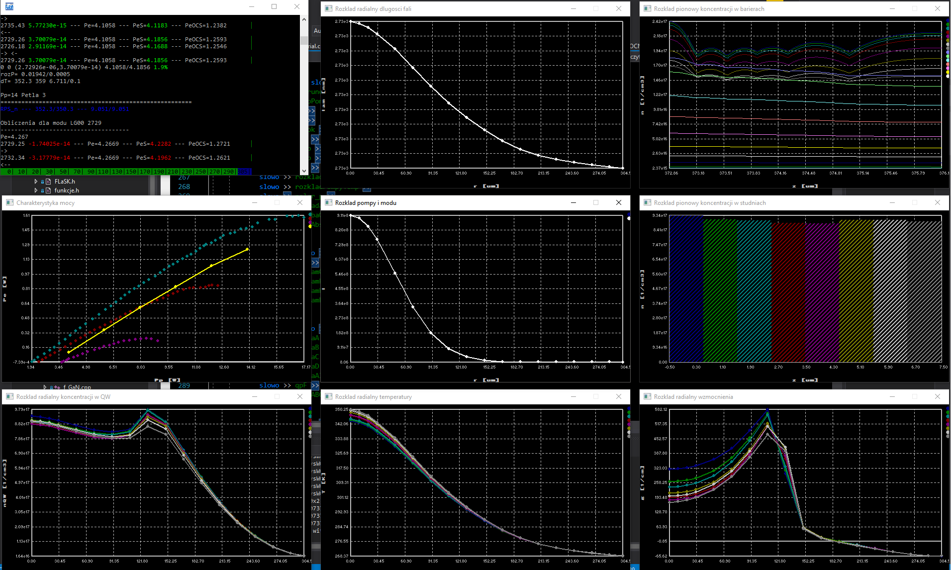 W ramach pracy doktorskiej opracowałem i zaimplementowałem nowy numeryczny model lasera typu VECSEL, umożliwiający kompleksową analizę jego działania, poczynając od badania przebiegu pojedynczych zjawisk fizycznych, a na przewidywaniu charakterystyk eksploatacyjnych gotowego przyrządu kończąc. Model ten składa się z osobnych modułów obliczeniowych przeznaczonych do modelowania określonej grupy zjawisk oraz nadrzędnego modułu sterującego. Część z modułów (struktury pasmowej, wzmocnienia, cieplny) została opracowana na bazie istniejącego oprogramowania symulacyjnego Zespołu Fotoniki Instytutu Fizyki Politechniki Łódzkiej, a część (transportu i rekombinacji nośników, optyczny oraz bibliotekę do rysowania wykresów) napisałem od podstaw.